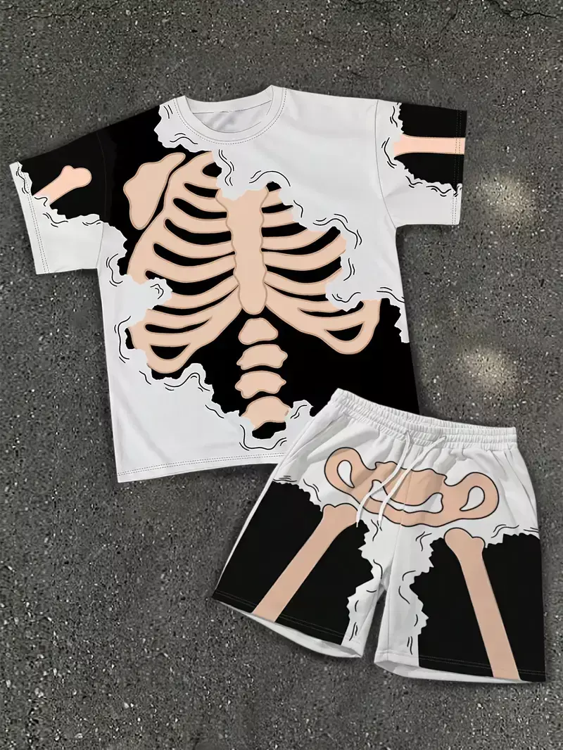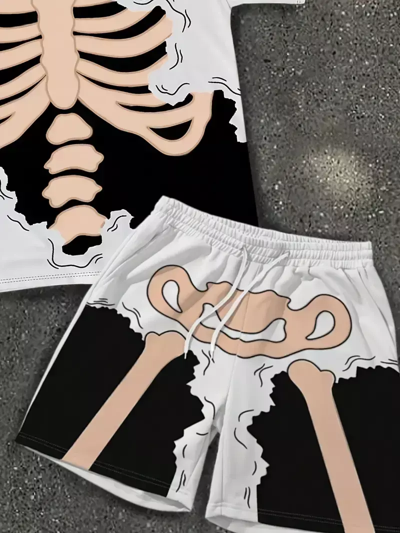 Estampa gráfica exclusiva de esqueleto preto e branco